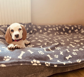Welpe Nr. 4 Hündin Nr. 2 Fellfarbe: Harepied