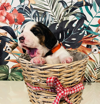 Welpe Nr. 5 Hündin Nr. 3 Fellfarbe: Tricolor